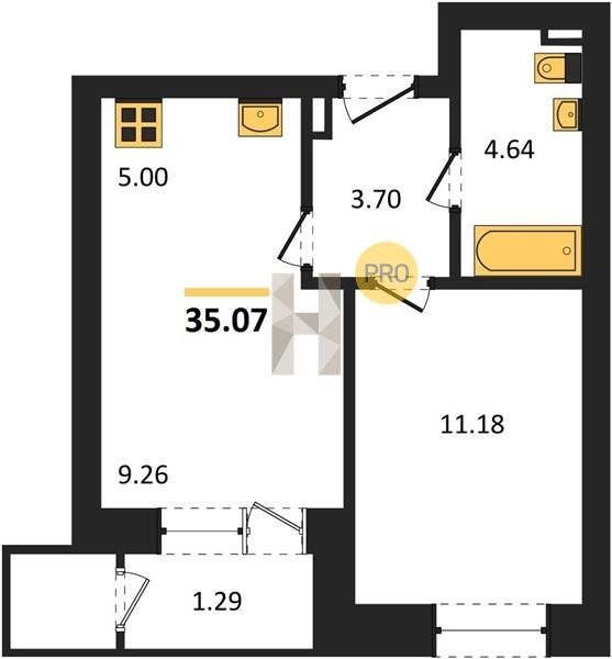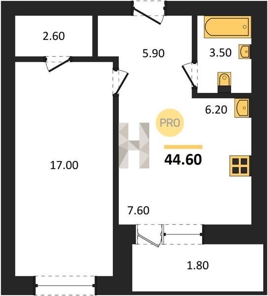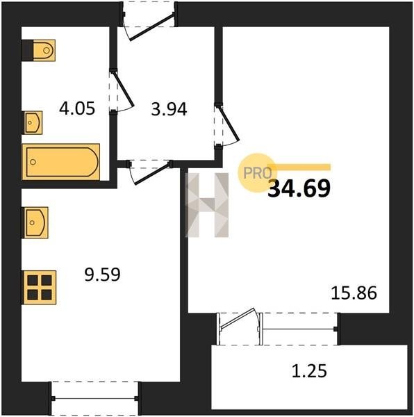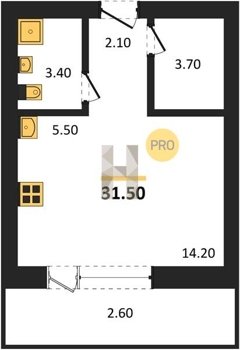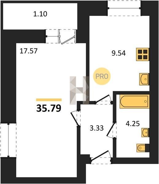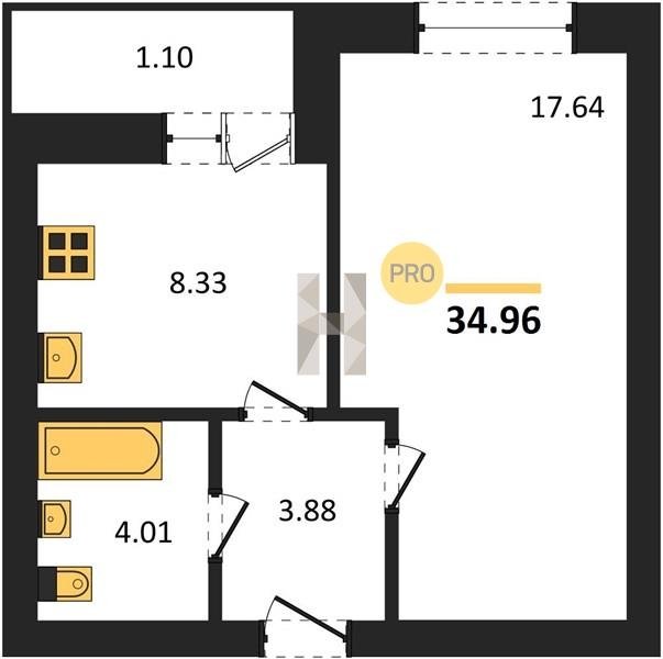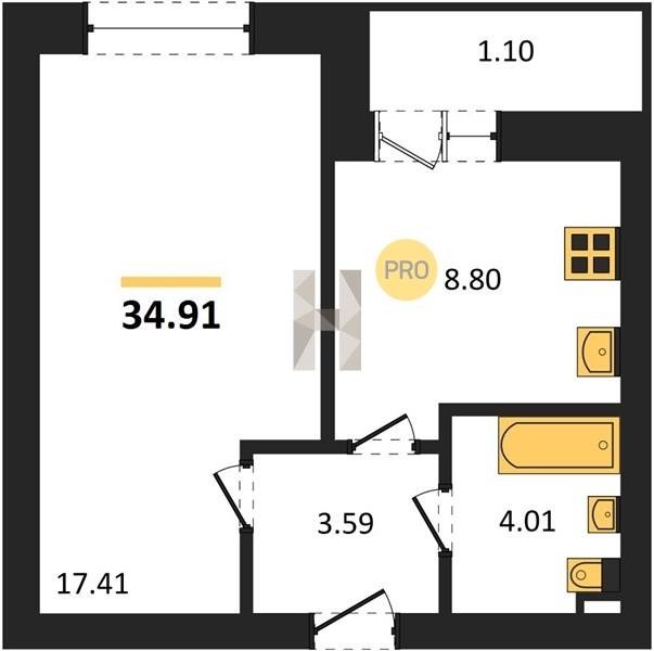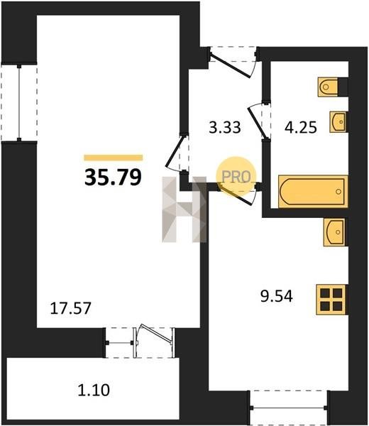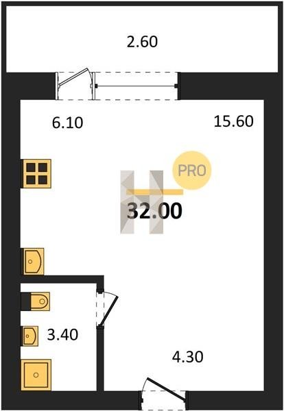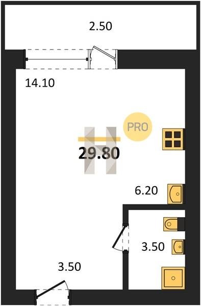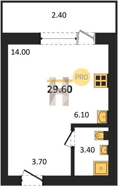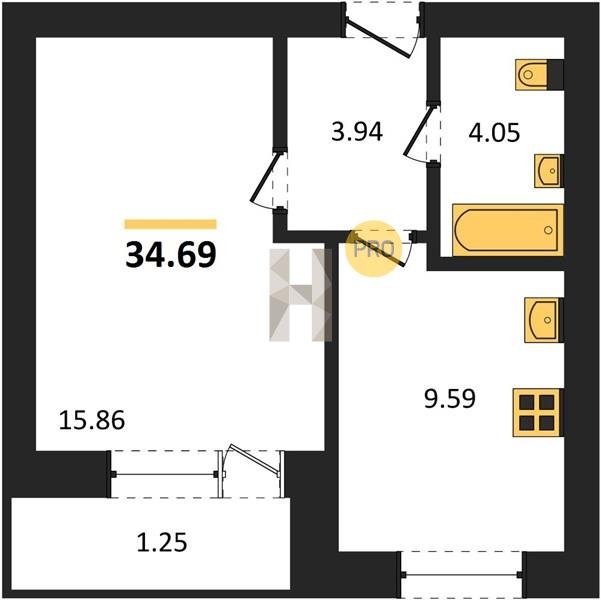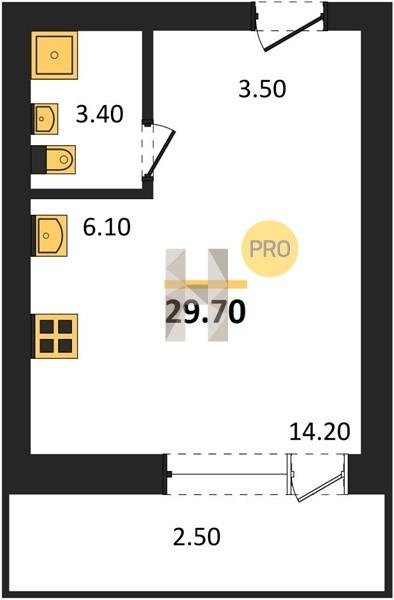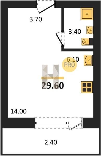 Площадь от 29.6 м2