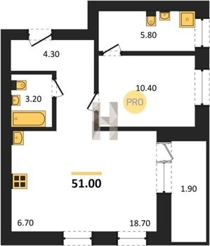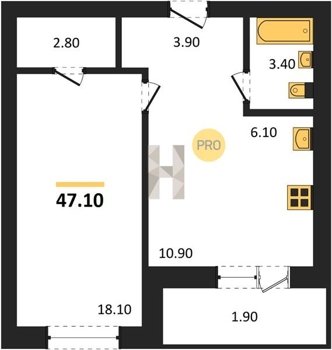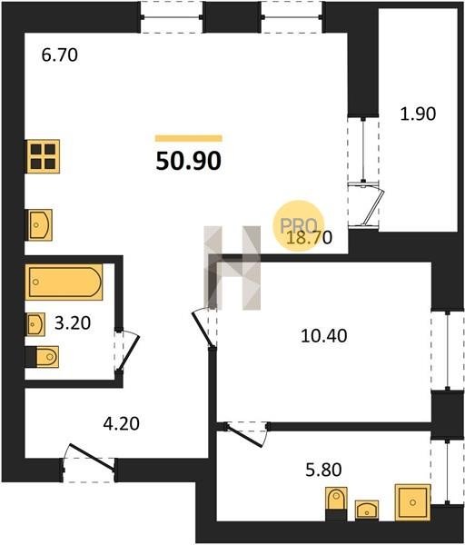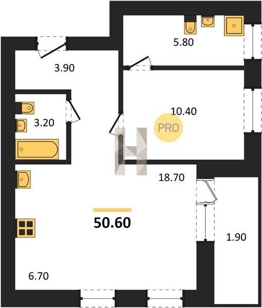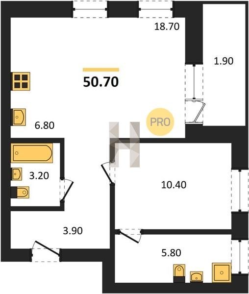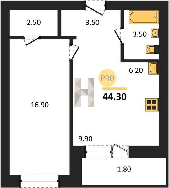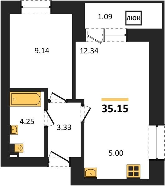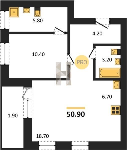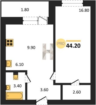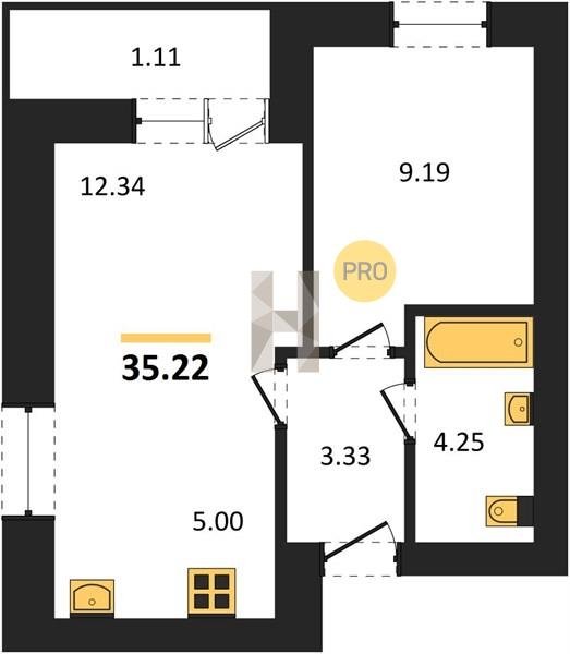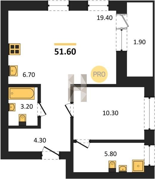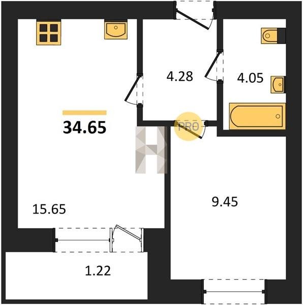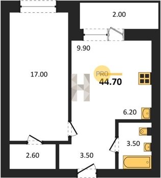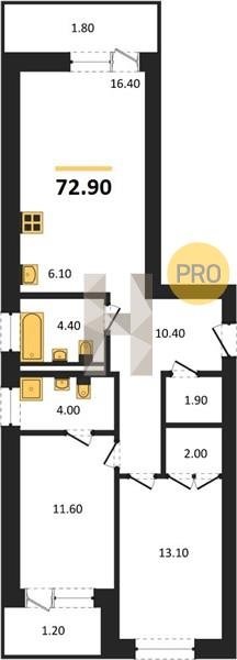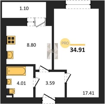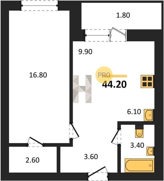 Площадь от 29.6 м2