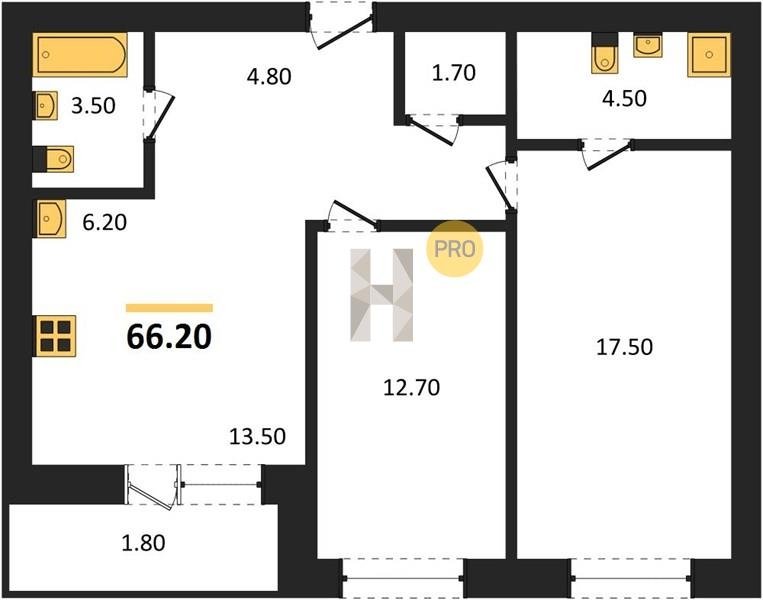 Площадь от 66.2 м2